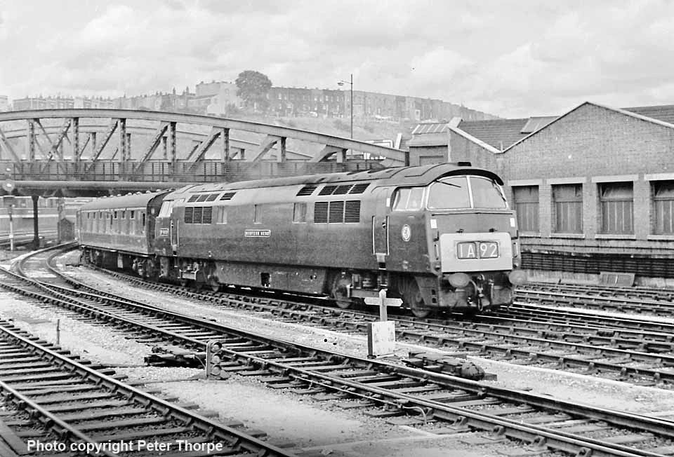 “Western” D1020 WESTERN HERO groans round the back, despite having been built by Swindon Works and put into service on the 21stMay 1963, it was withdrawn ten years later from 84A Laira depot on the 4thJune 1973 after achieving almost a million miles in service.