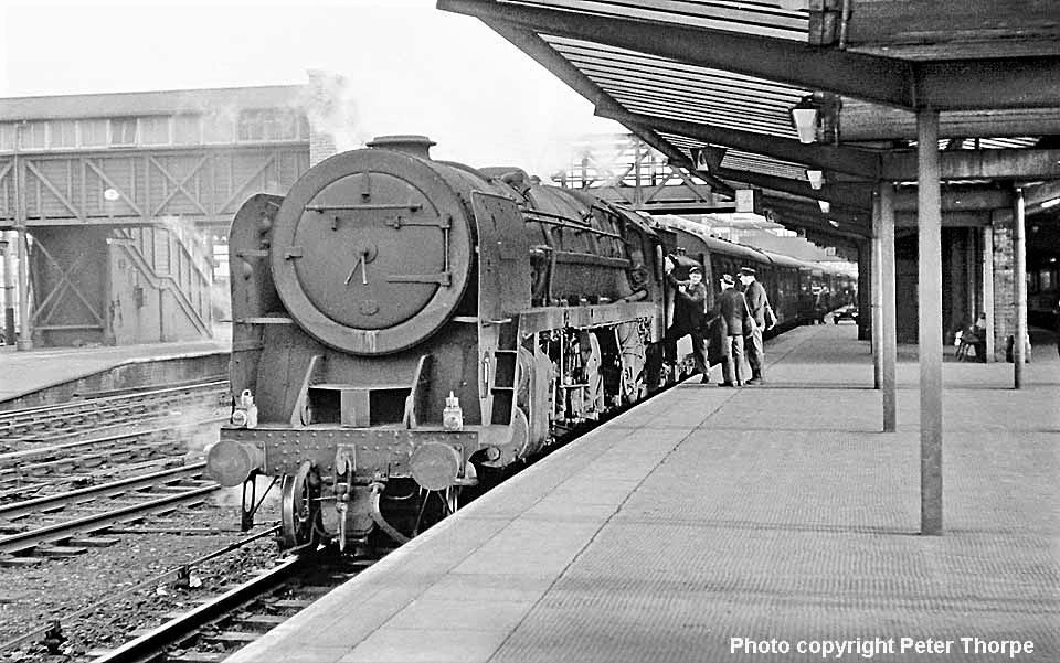 Of interest for the keen model maker in this shot is the view of the slots above the cab side number, which appeared during mid-1956. It, was stated that they were fitted for the driver’s name (although some slots have been noted on the fireman’s side) to be displayed on engines employed on the main expresses. It was claimed that they were seldom used and indeed I never observed any being used.